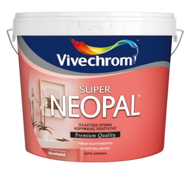 PËRSHKRIMi: Super Neopal i Vivechrom është një bojë plastike me cilësi të lartë që dallon për mbulimin e saj të shkëlqyeshëm dhe rezistencën e shkëlqyeshme ndaj larjes së shpeshtë. Punon lehtë, përhapet në mënyrë të mrekullueshme, thahet shpejt dhe ka një ngjitje të fortë. Hijet e saj të ndritshme të bardha dhe të gjalla dhe të pandryshuara ofrojnë një përfundim perfekt mat, duke krijuar hapësira të bukura me një personalitet të veçantë. Super Neopal zbatohet në suva, plasterboard, beton, tulla, dru. Nuk përmban amoniak. Nuk kontribuon në zhvillimin e zjarrit dhe përhapjen e flakës.
